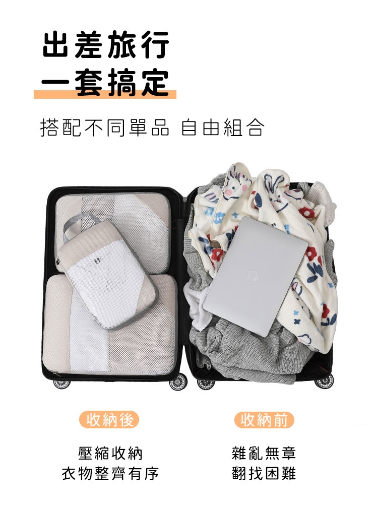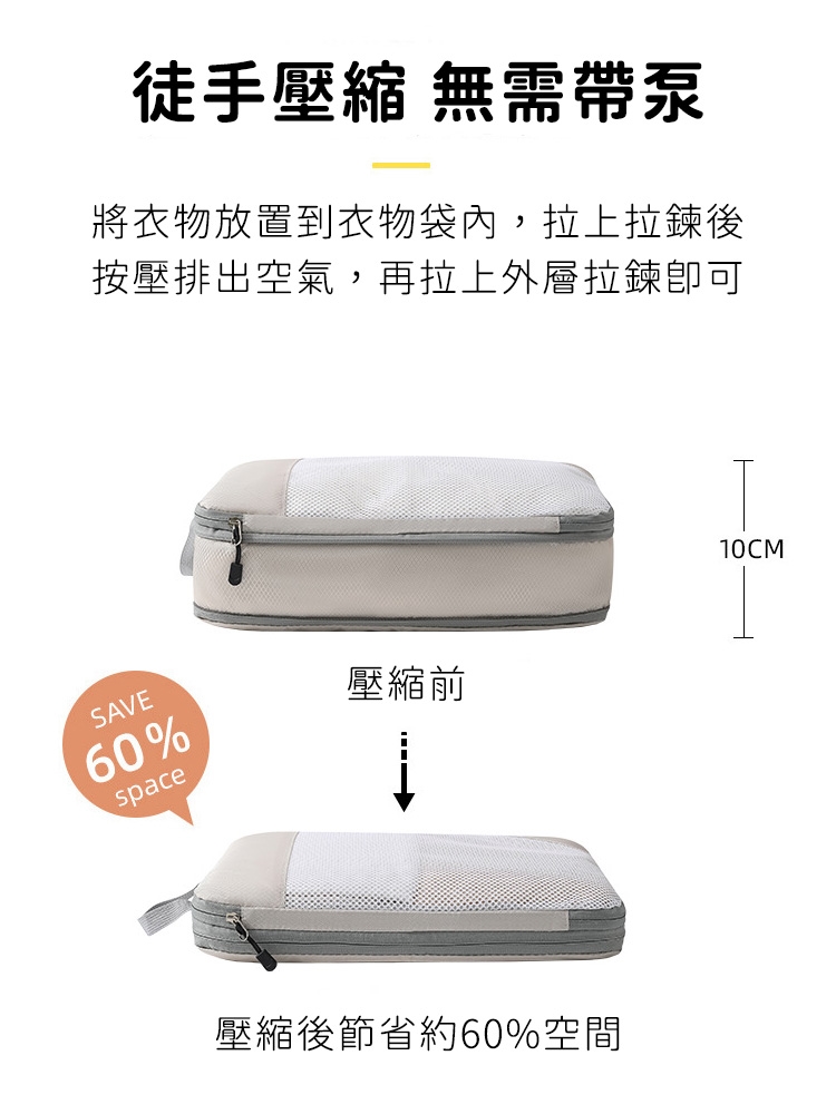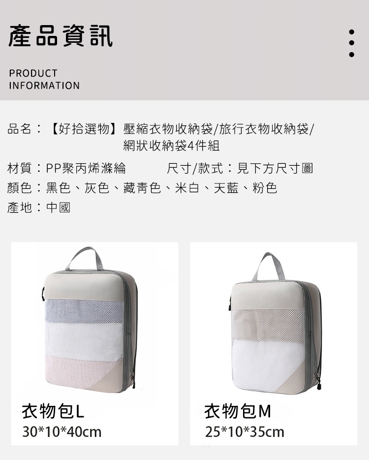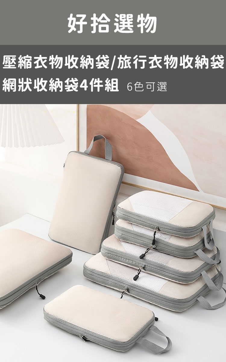 商品名稱:壓縮衣物收納袋/旅行衣物收納袋/網狀收納袋4件組