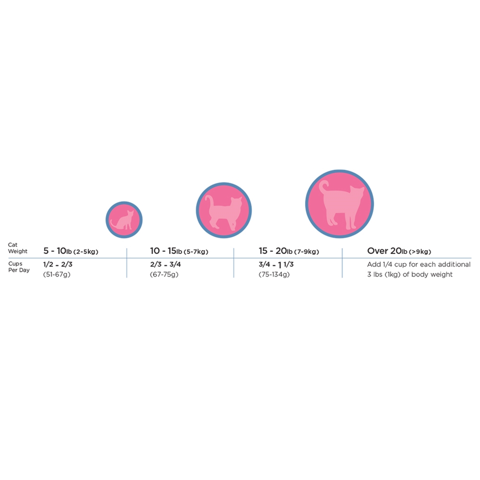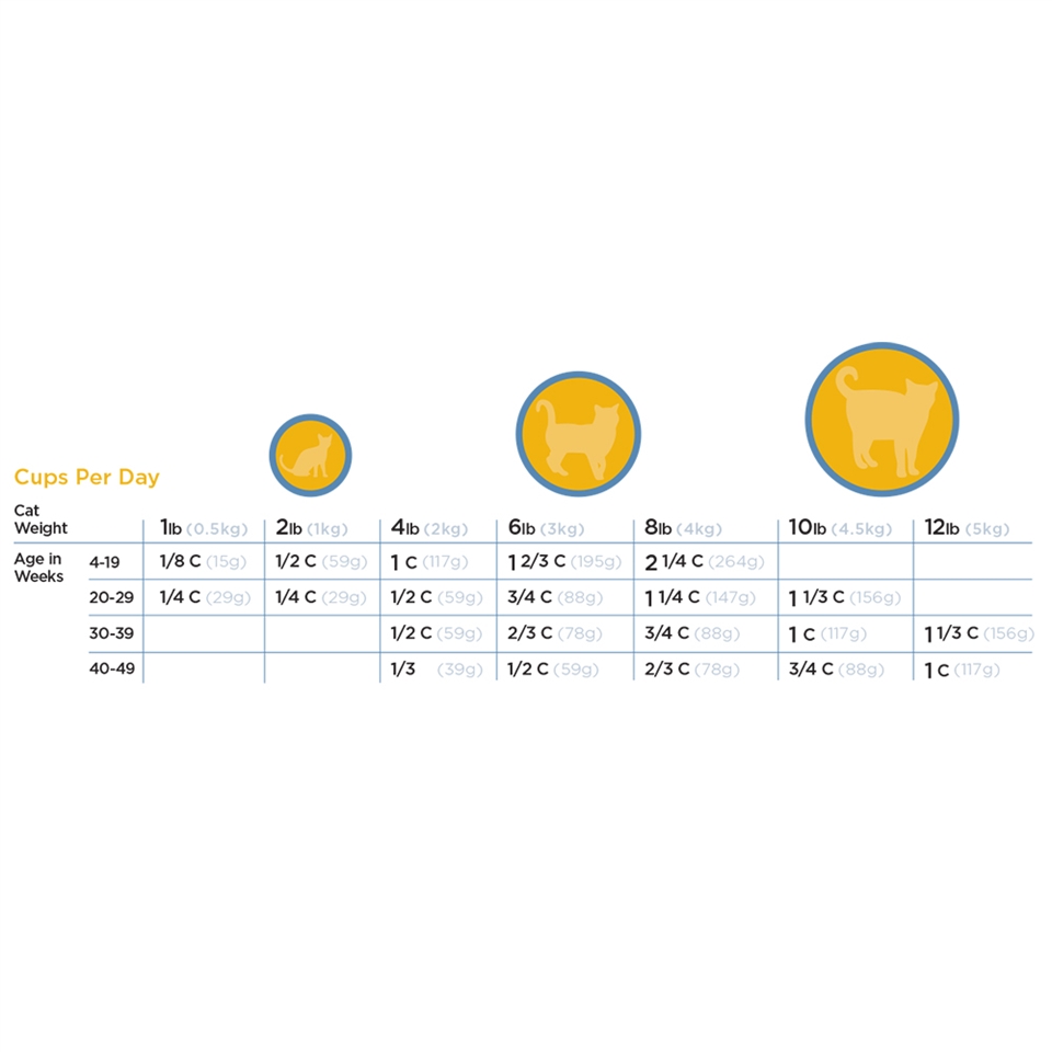 濃縮雞肉,糙米,小米,研磨高粱穀粒,濃縮白魚肉,雞脂肪(以維生素E保存),蛋製品,豌豆蛋白,乾燥啤酒酵母,天然風味劑,乾燥甜菜漿,鯡魚油(以維生素E保存),DL-蛋胺酸,氯化鉀,L-離胺酸,牛磺酸,乾燥蔓越莓,乾燥藍莓,鹽,維生素C,絲蘭萃取物,維生素D3補充劑,碳酸鈣,維生素E補充劑,菸鹼酸補充劑,維生素E,乾燥海藻粉,各種必需維生素及礦物質,乾酪乳桿菌,嗜酸乳桿菌,動物雙歧桿菌,羅伊氏乳桿菌