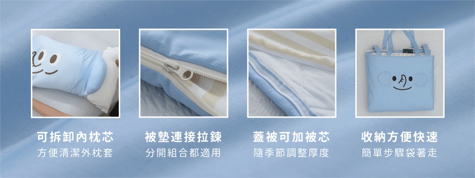 ‧ 洗滌時建議將床組翻至反面,並放入大型洗衣袋,不僅可減少摩擦降低起球機率,也可保護床組表面並減少因洗衣機強力拉扯而造成的毀損。