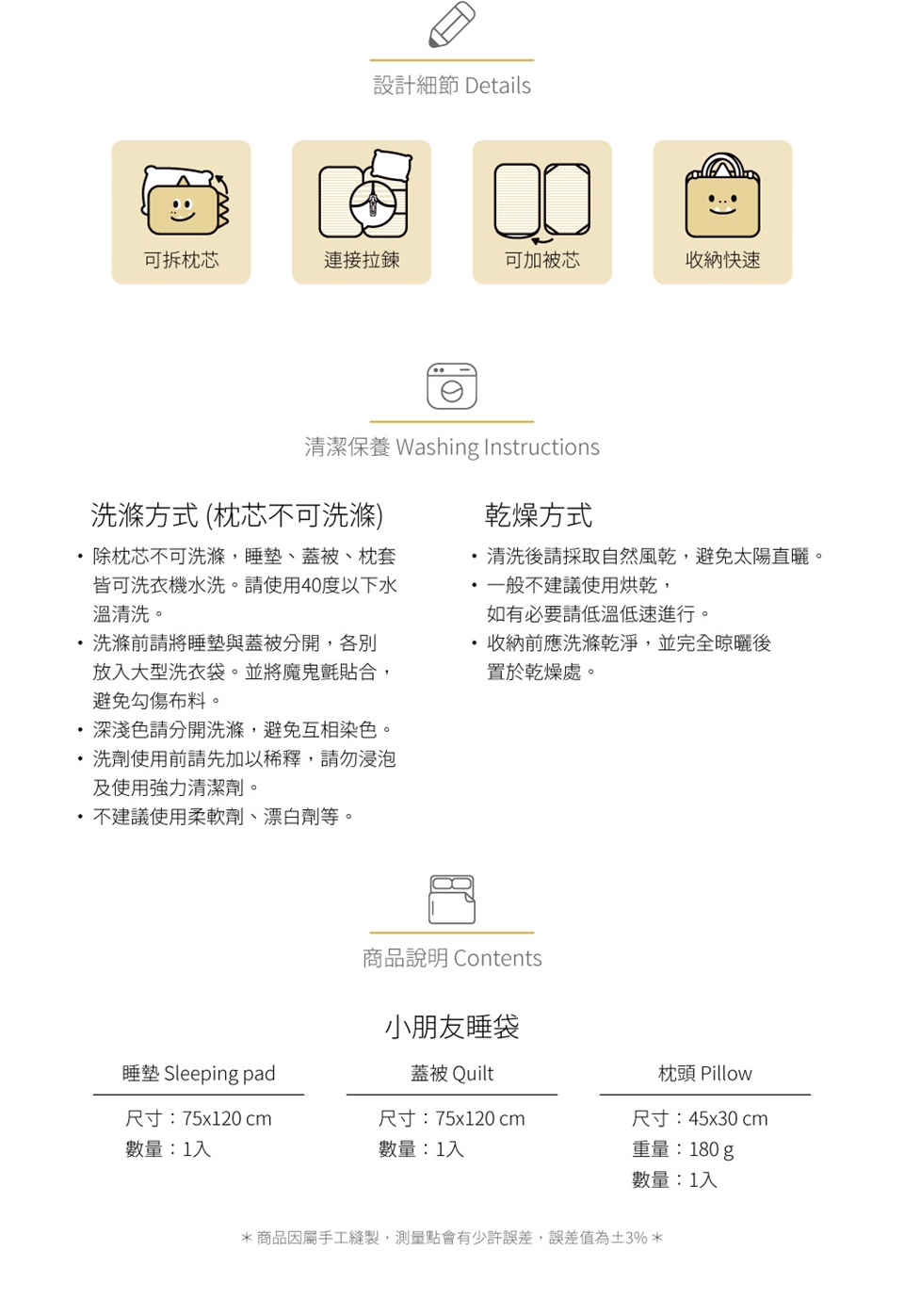 【好關係 HAOKUANXI|小朋友睡袋/兒童睡袋-睡墊、蓋被、枕頭三件組】