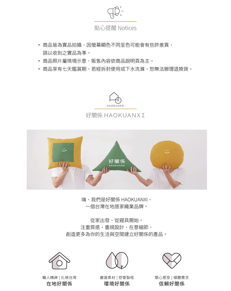 ‧ 請勿浸泡床寢及使用強力清潔劑,不建議使用柔軟劑、漂白劑等。
