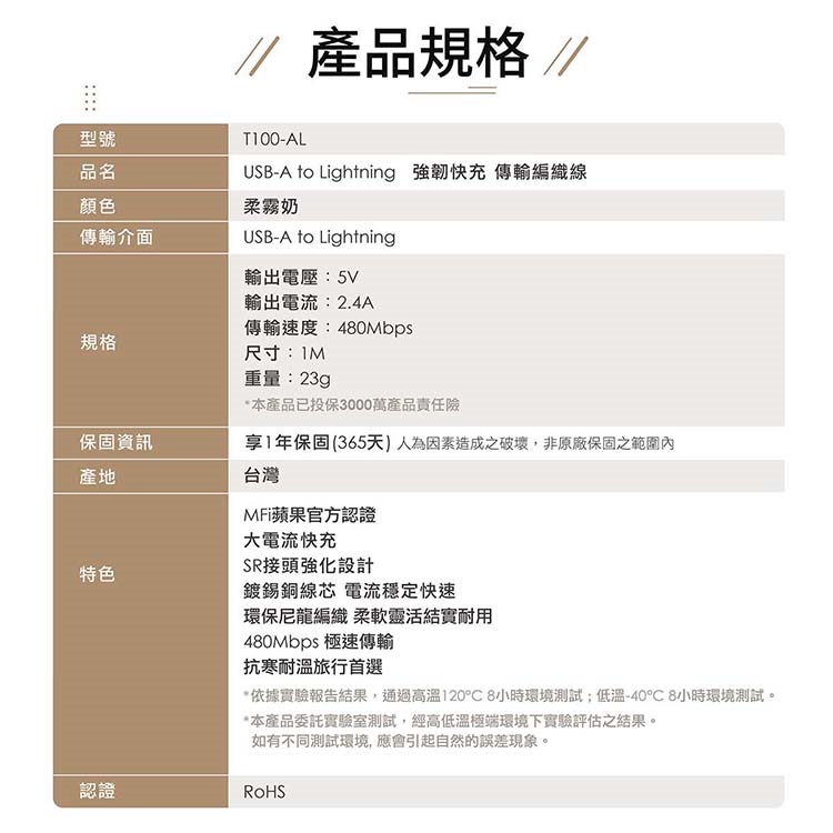 認證:MFi蘋果官方認證 / RoHS