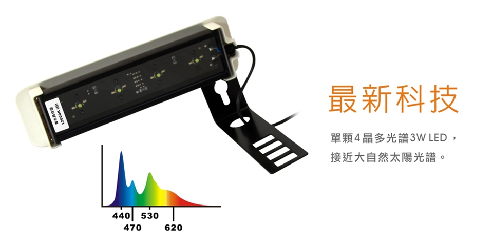 1.最新科技:單顆4晶多光譜3W LED,接近大自然太陽光譜。
