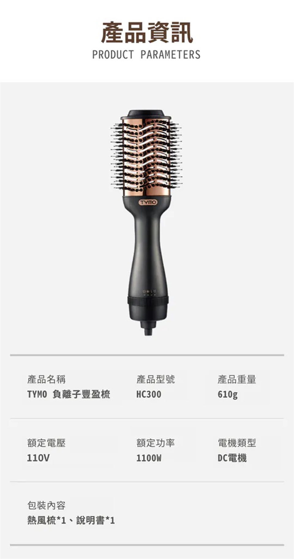 產品型號:TYMO VOLUMIZER 負離子熱風梳