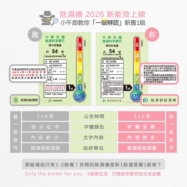 ※除濕機新、舊能效標籤的庫存調撥中,如收到產品沒有2026新能效標籤,可與原廠聯繫!※