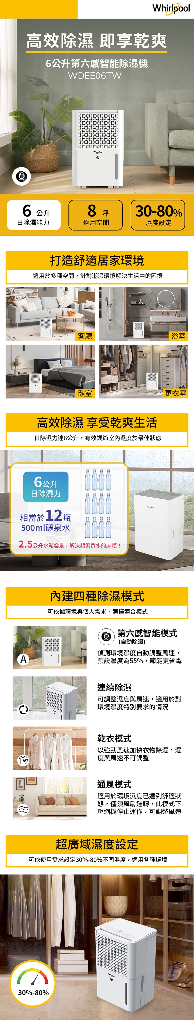 ◆超廣域濕度設定,可依需求設定30%~80%之間濕度。