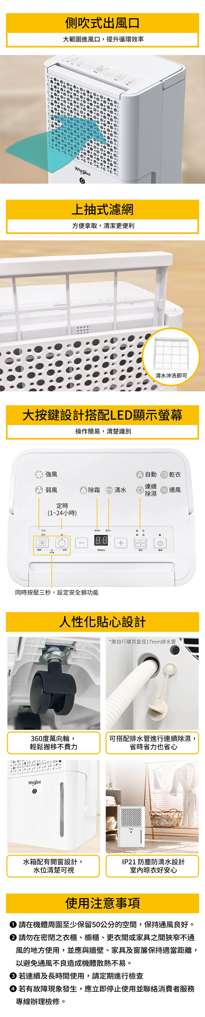◆可自行購買排水管進行連續除濕,省時省力省心。