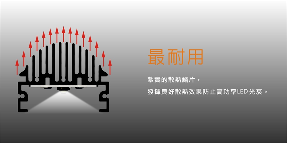 3.最耐用:紮實的散熱鰭片,發揮良好散熱效果防止高功率LED光衰。