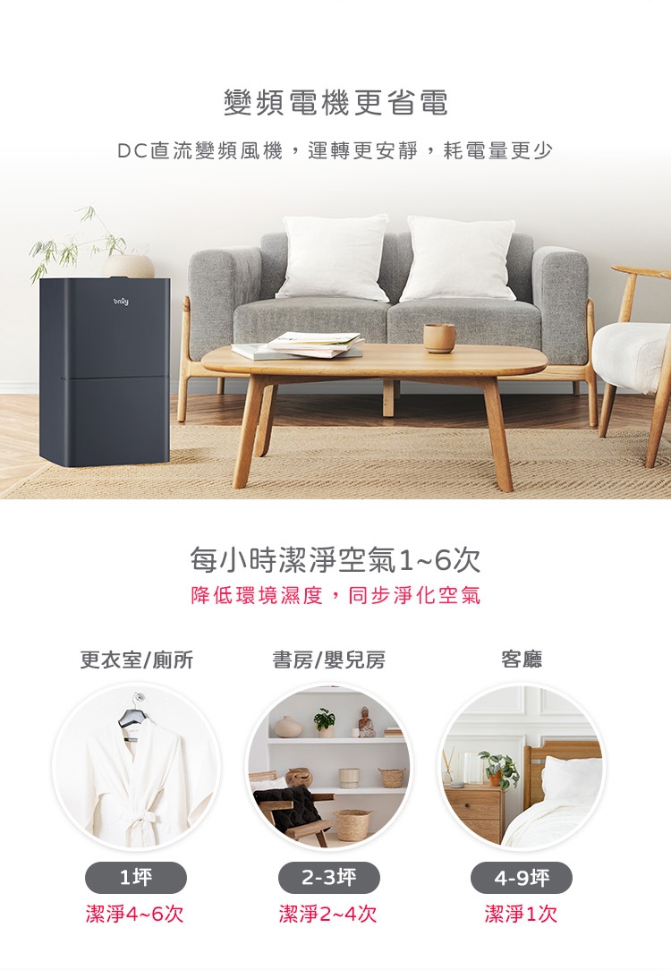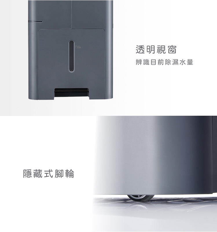※ 本款除濕機清淨能力,依標準規範實測CASR值為1.12,因以除濕為主,附加清淨為輔,並無單獨清淨,所以無另行申請清淨機能效分級標示。