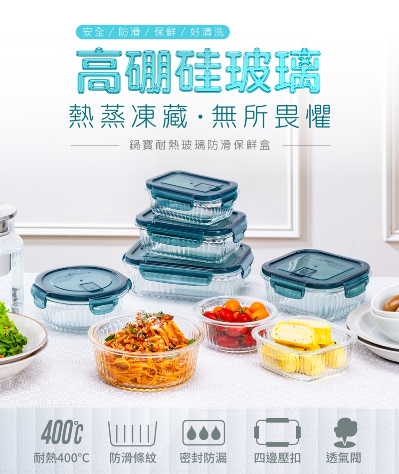 品名:【鍋寶】耐熱玻璃防滑保鮮盒320ml-圓型
