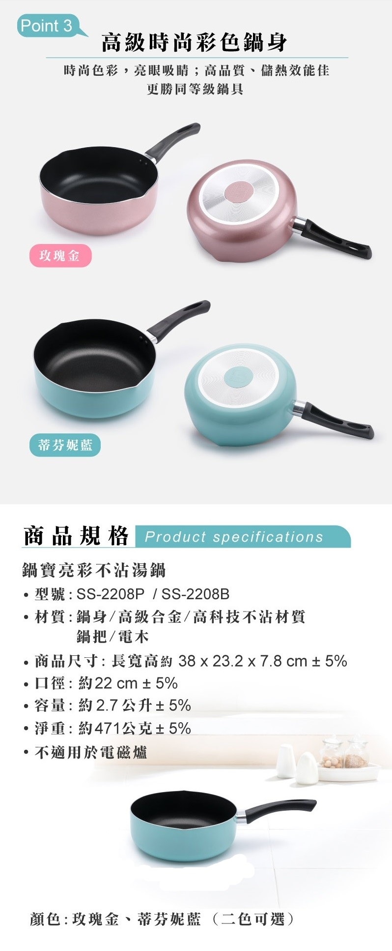 品名:鍋寶 亮彩不沾湯鍋22CM