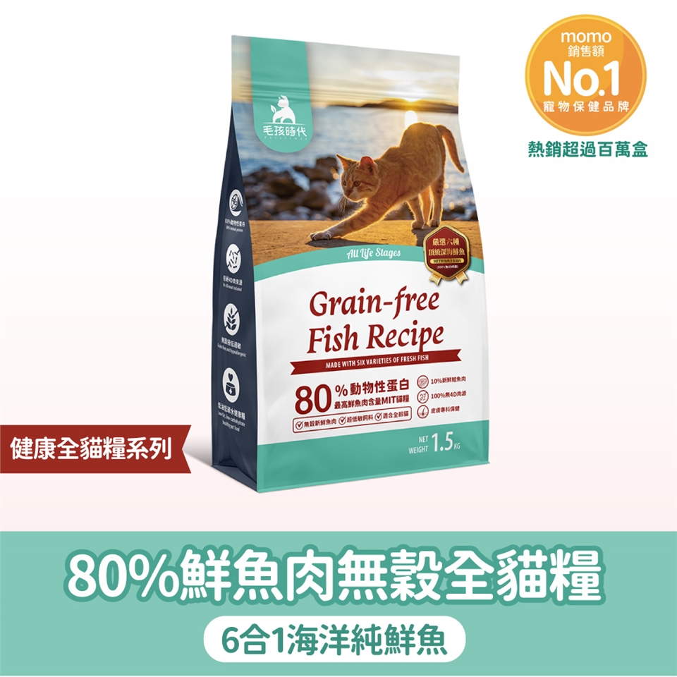 5、為什麼貓飼料推薦毛孩時代的80%鮮魚肉無穀全貓糧?