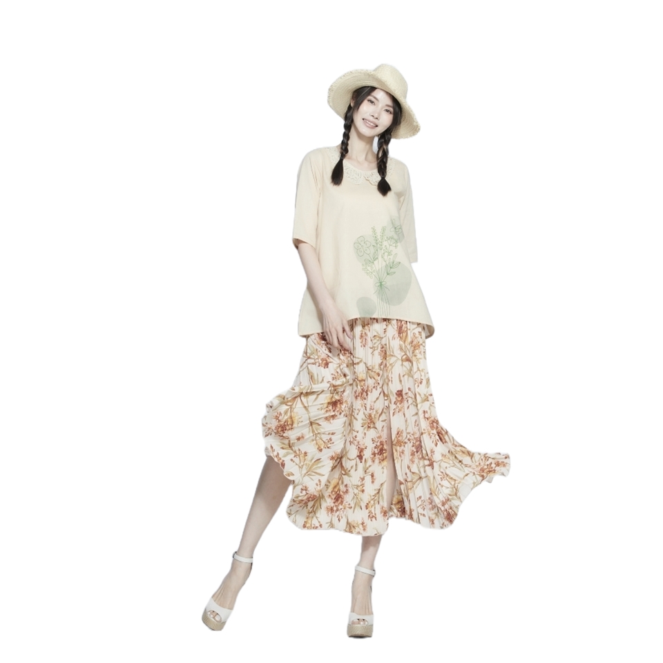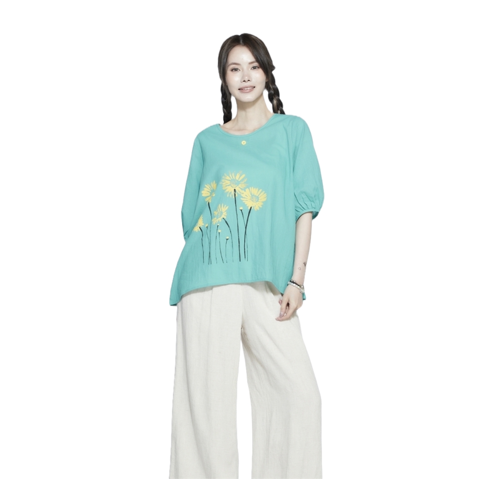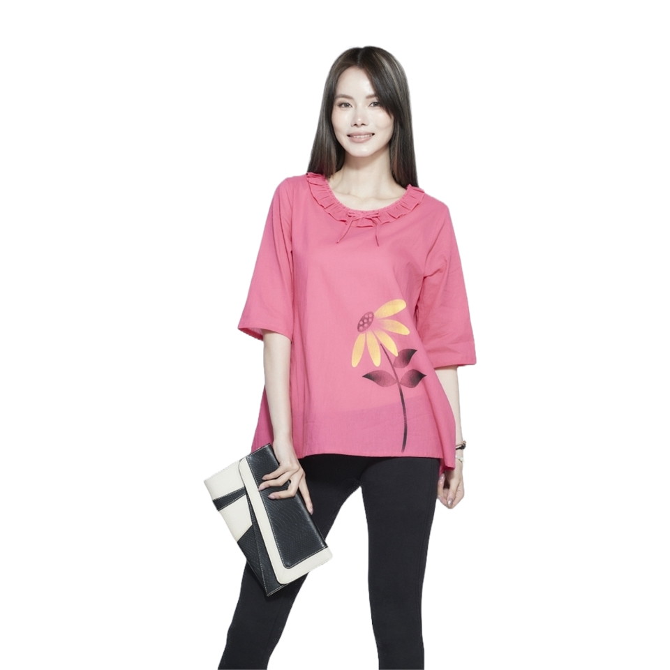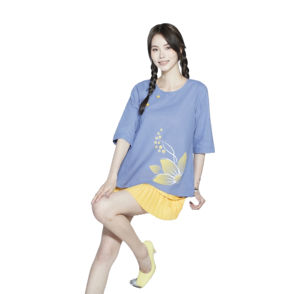 02.簡約好感剪接上衣,繽紛明亮色系,定位印染,穿著更顯文雅好氣色。