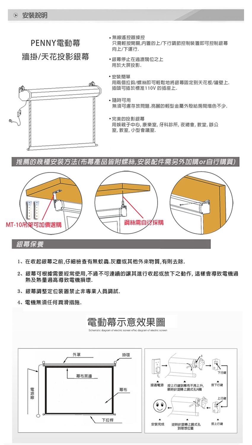 PENNY PX-120(16:10)方型電動幕 投影機布幕首選