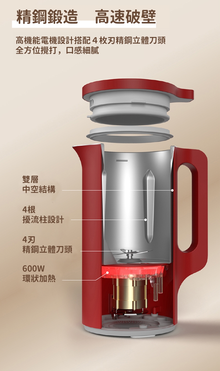 ●600W環狀均勻加熱,鮮喝鮮煮,滑順香濃