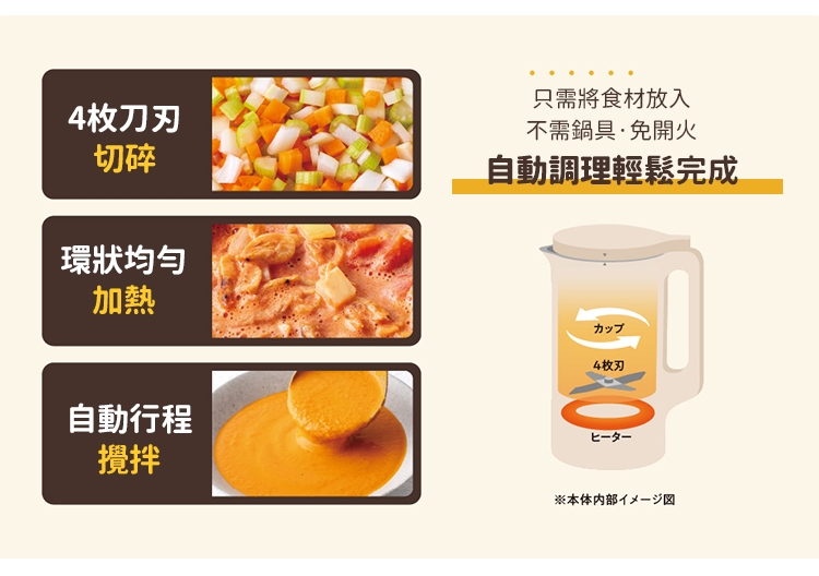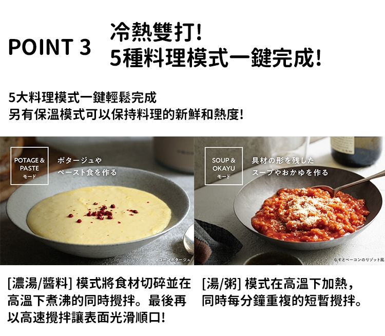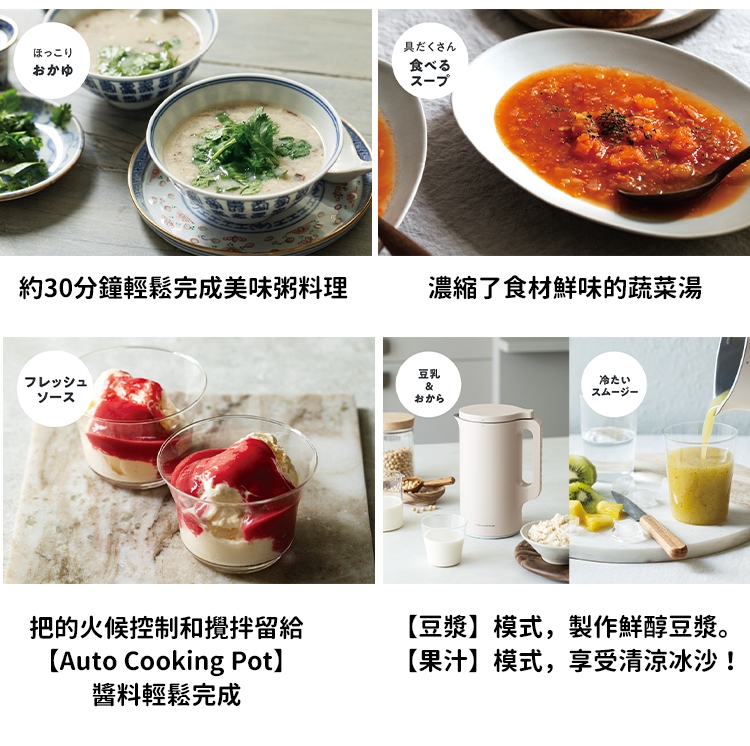 ●冷熱雙打,豆漿、濃湯、醬汁、湯品、粥、果汁、冰沙、副食品等,各種私房飲品一鍵完成!
