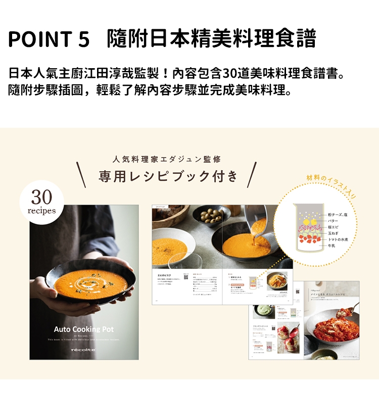 包裝內容 : 主機、上蓋、量匙、專用清潔刷、專用食譜、中文說明書和保固卡
