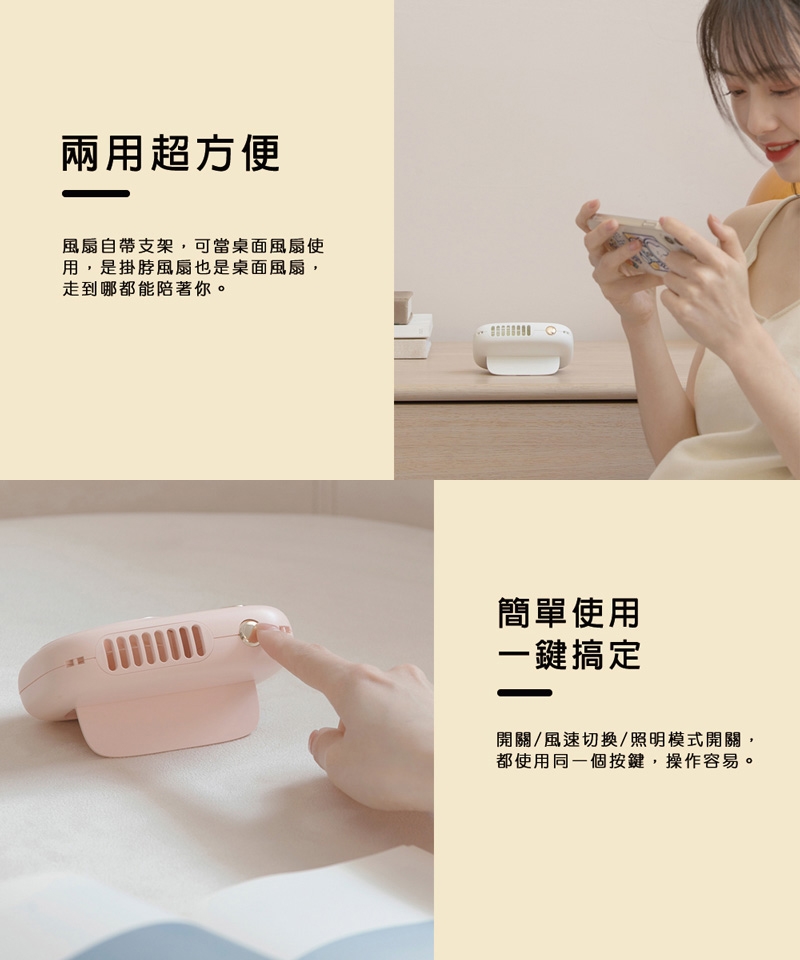 ✅ 完美設計👉羽量級,無感掛頸不夾髮。✅ 功能設計👉桌立、頸掛、手持多用途。