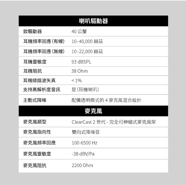 耳機頻率響應:10 - 40000 赫茲 (有線)