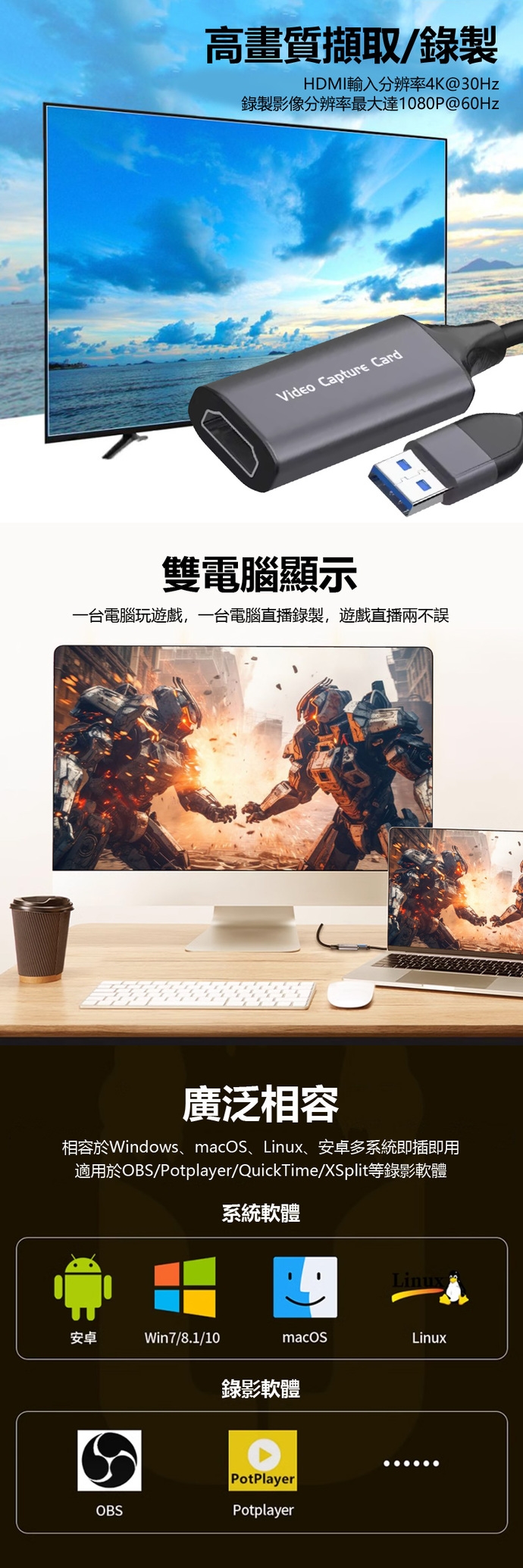 ★ 相容Windows、Mac、Linux、安卓等系統