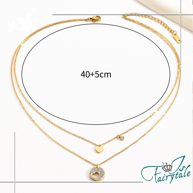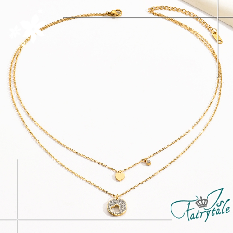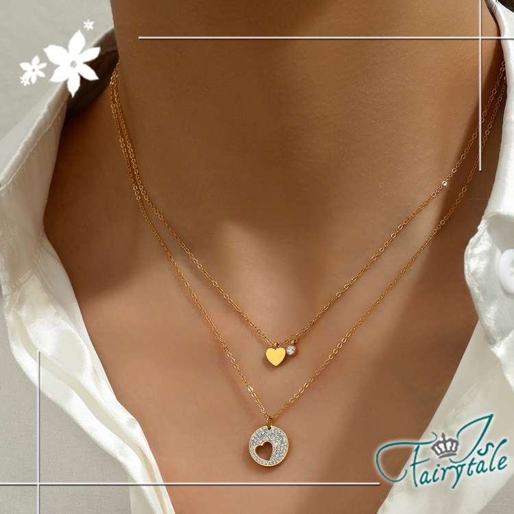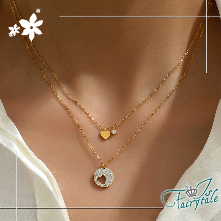 小圓鑽鏤空雙愛心風格,日系雙層鍊時尚設計,