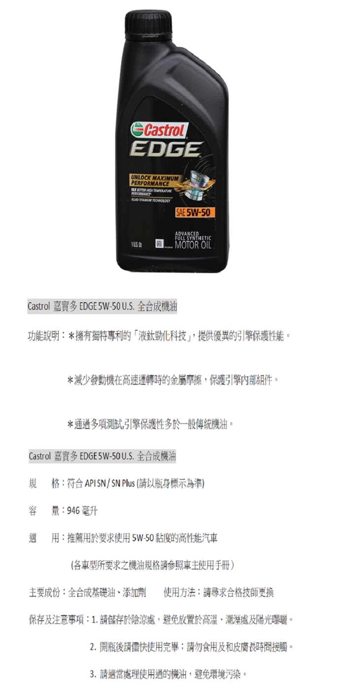 ◎ 適用:推薦用於要求使用5W-50黏度的高性能汽車