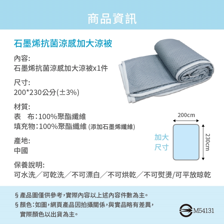 ★內容件數:石墨烯抗菌涼感加大夏涼被/冷氣被x1