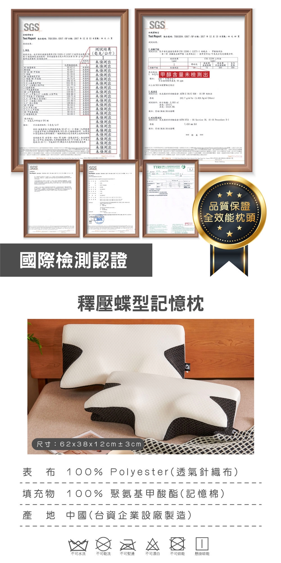 不可水洗/不可烘乾/不可漂白/不可熨燙/懸掛晾乾