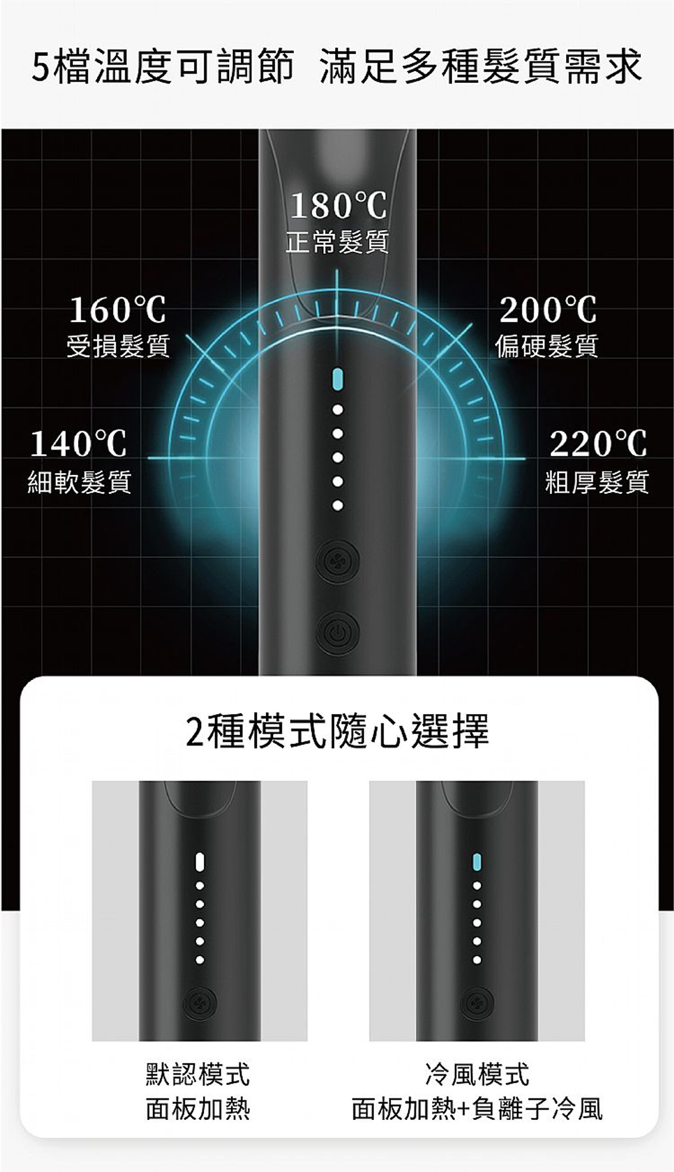 ★五檔溫度調節滿足各種髮質需求