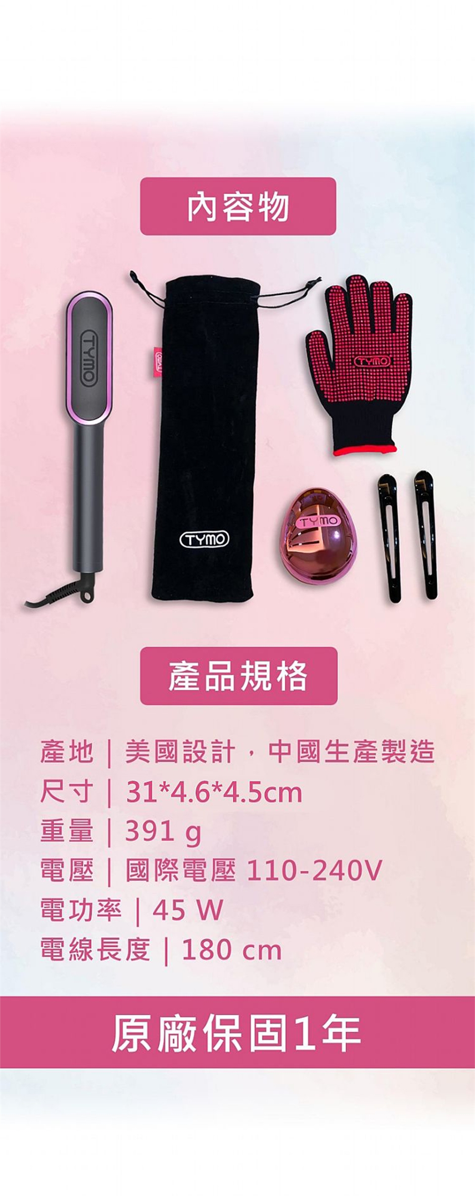 產品型號:TYMO RING 直髮梳 夢幻粉|經典黑