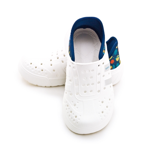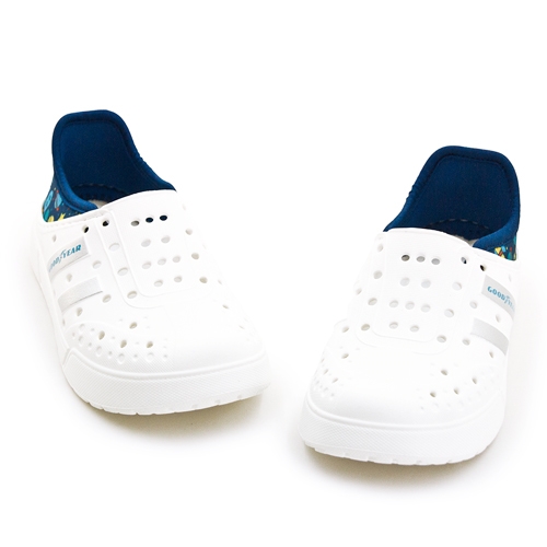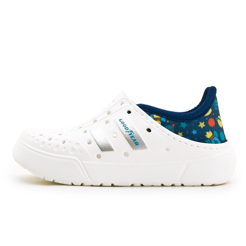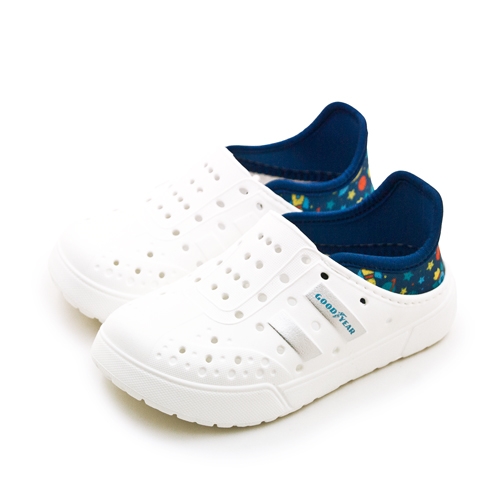 【中童】GOODYEAR 排水透氣輕便水陸多功能休閒兒童後踩式洞洞鞋 夏日遨遊系列 台灣製造 白藍銀 48829