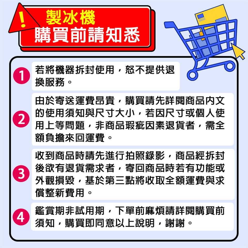 💬製冰機如有移動或稍微晃到(也包含剛收到商品後),請先靜置約24小時