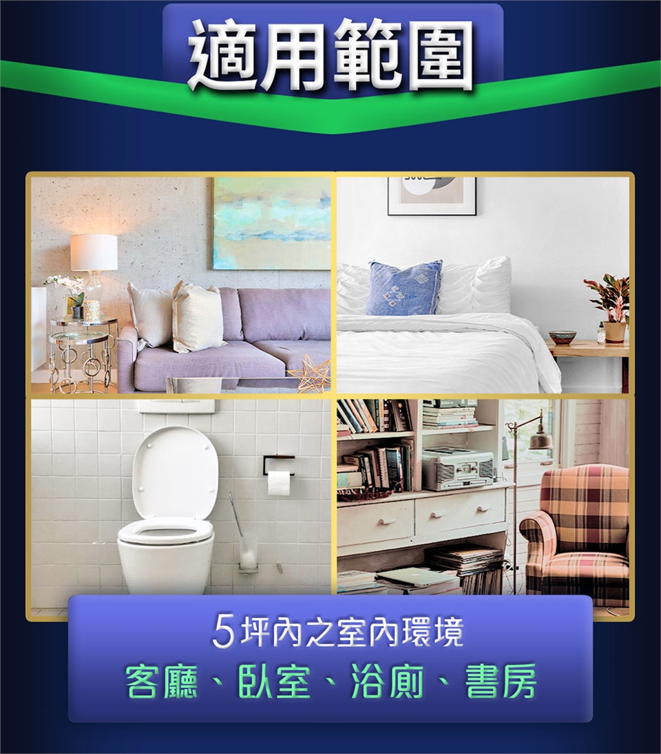 適用範圍:5坪內之室內環境:客廳、臥室、書房、浴廁
