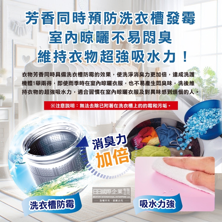 (11)持久芳香消臭效果會受洗滌衣物多寡、水量、衣物翻轉次數、洗衣機類型、晾曬方式和靜置狀態等因素不同而影響。