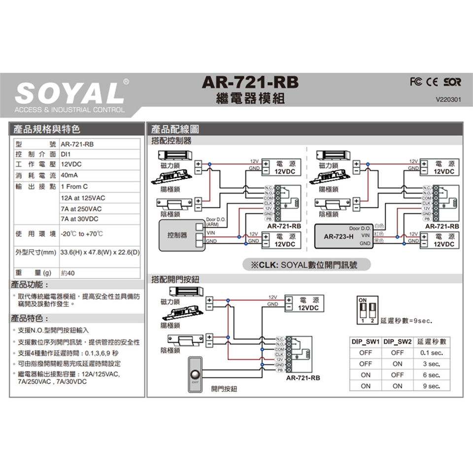 -支援N.O.型開門按鈕輸入