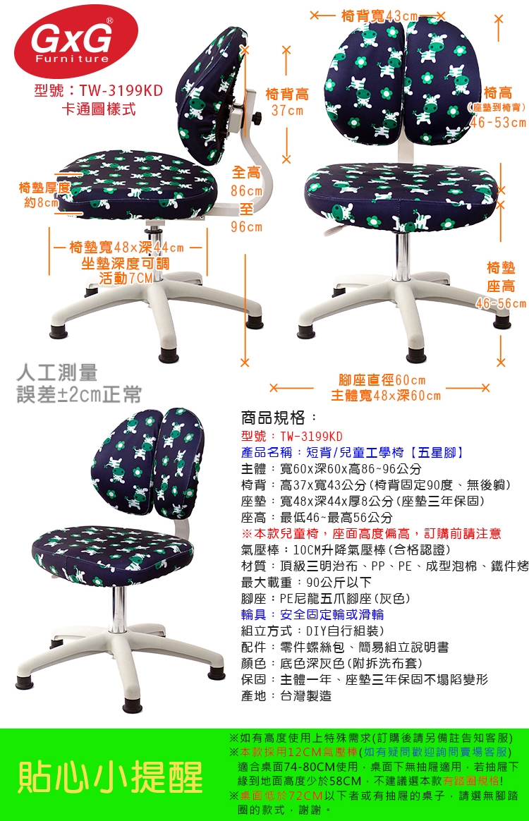 ※購買注意事項:本座椅高度,均以搭配標準桌高74~80CM使用。