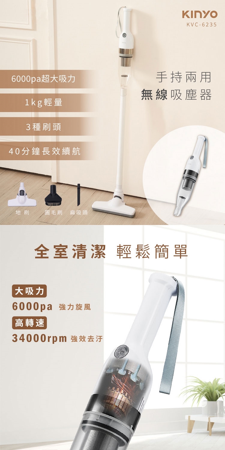 ★ 6000pa強力旋風,大吸力全室輕鬆清潔