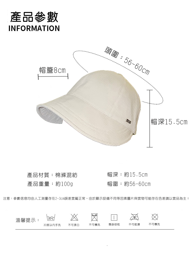 帽簷寬8cm,深15.5cm可遮擋側邊陽光
