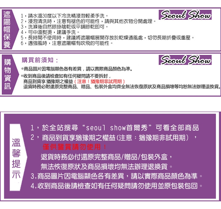 5,長時間不使用時,建議將遮陽帽展開存放於乾燥通風處,切勿長期折疊或重壓。