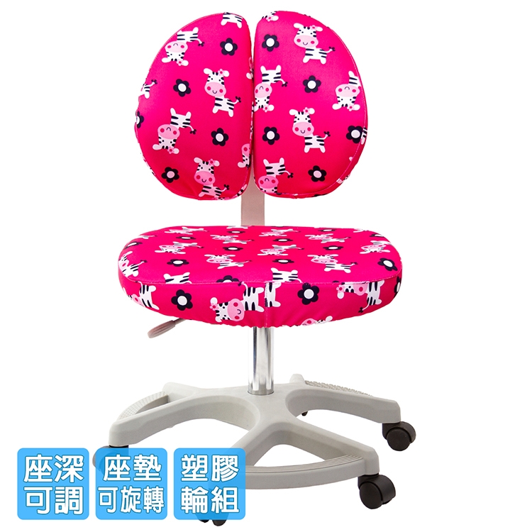 椅背可調整上下高低,配合孩童身高調整,椅背固定90度角不晃動(不可後躺),讓孩童安全使用、專心學習。