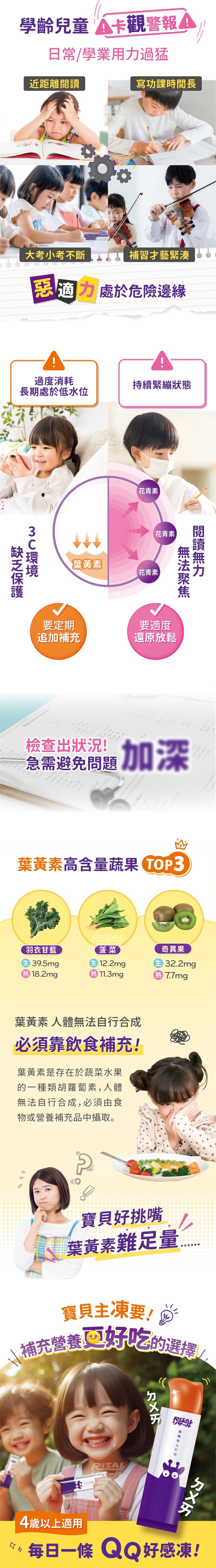 食用方式 : 4~12歲每日1包。兒童食用家長務必協助並注意噎食