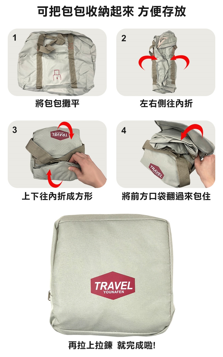1.背包左右側往內折疊成長條狀