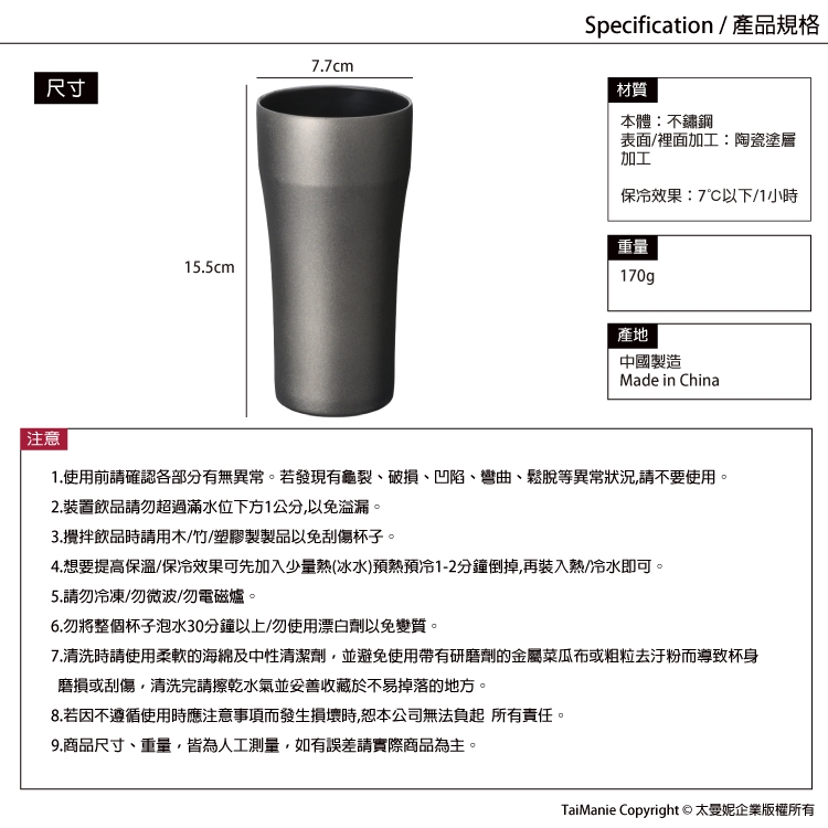 6. 勿將整個杯子泡水30分鐘以上/勿使用漂白劑以免變質。