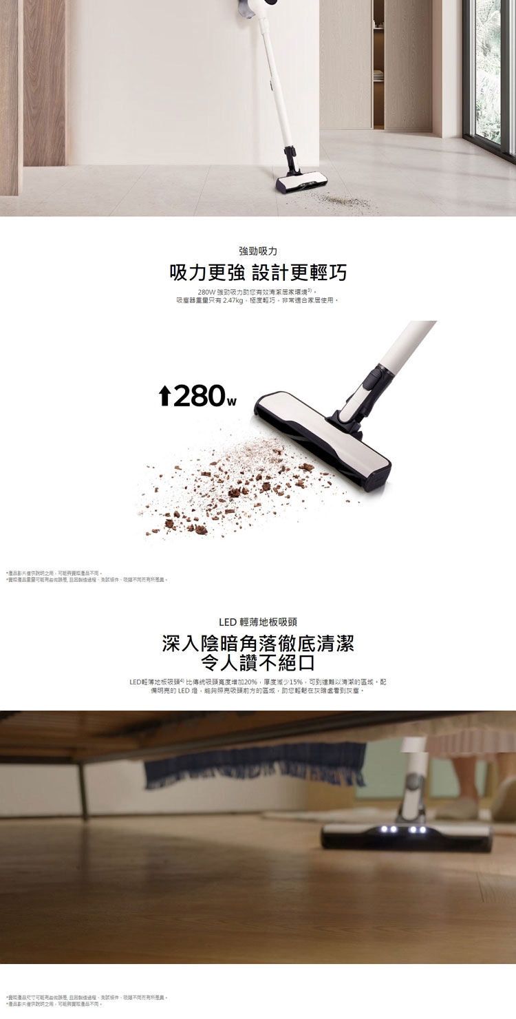 ◆ 吸塵器更輕量,吸力提升至 280W