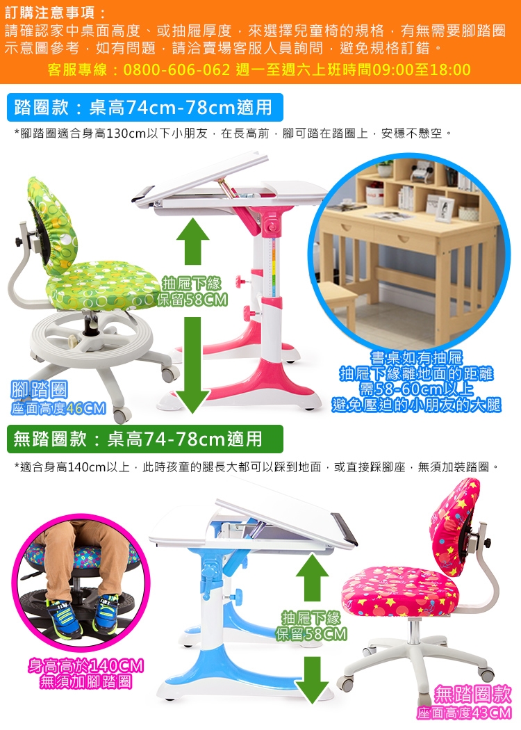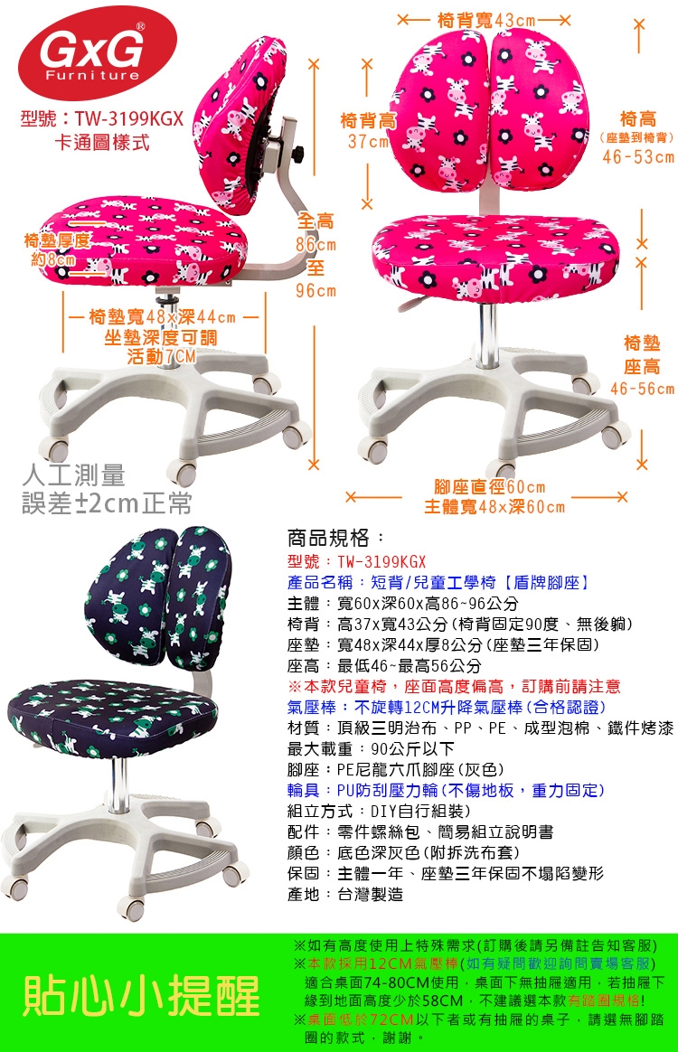 ※購買注意事項:本座椅高度,均以搭配標準桌高74~80CM使用。