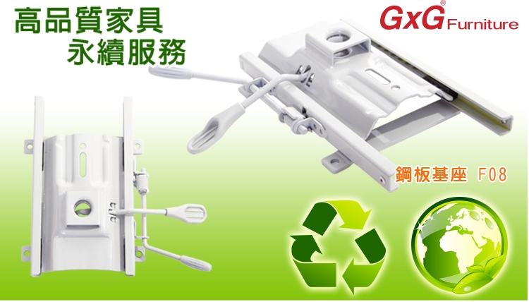 本款使用F08滑軌式鋼板基座,可以輕易調整坐墊深淺度,堅固耐用,能使用多年不易損壞、故障。