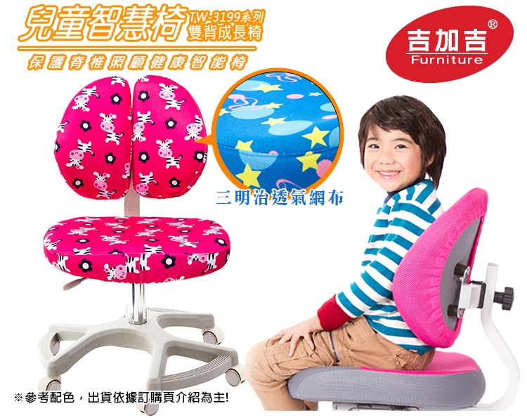 椅背可調整上下高低,配合孩童身高調整,椅背固定90度角不晃動(不可後躺),讓孩童安全使用、專心學習。
