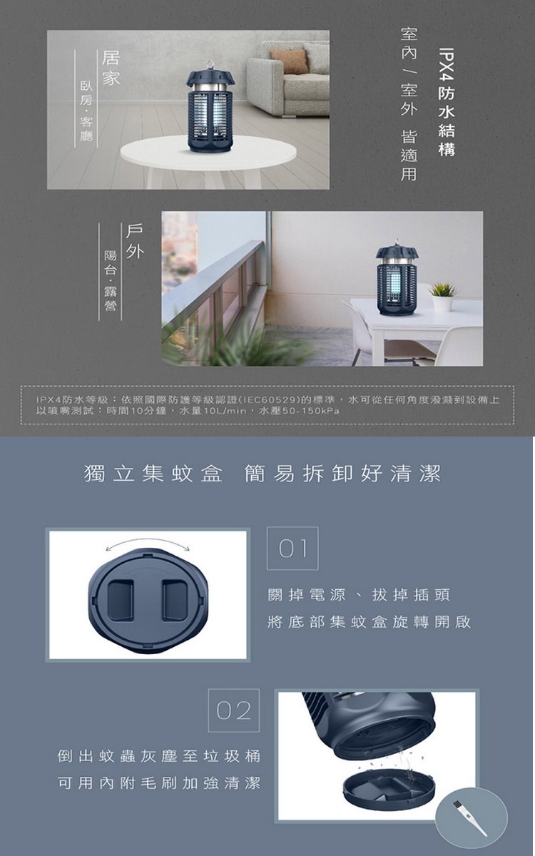 .IPX4防水結構,居家/陽台/戶外皆適用。