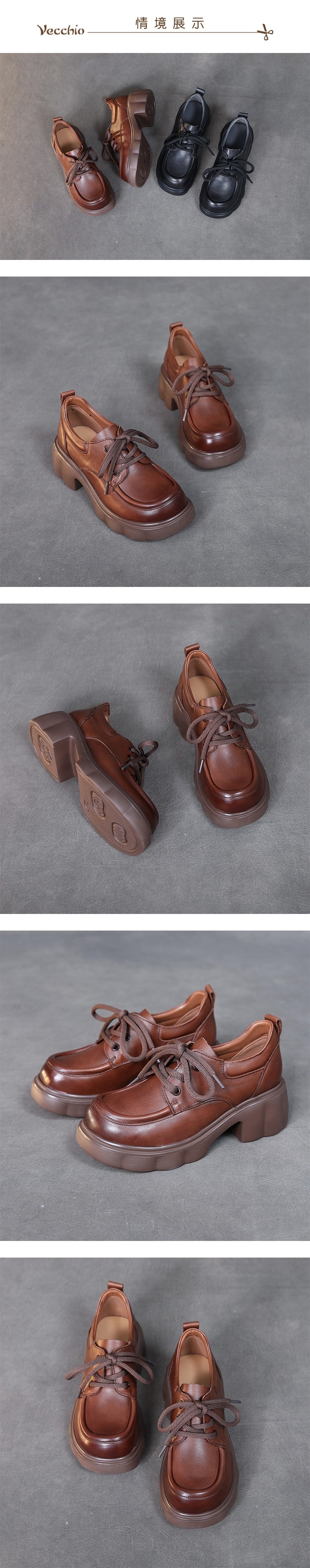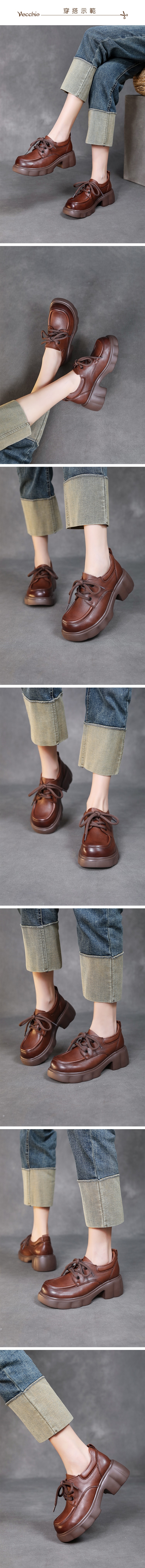 【VECCHIO】真皮繫帶厚底粗跟牛津鞋/真皮頭層牛皮立體滾邊繫帶厚底粗跟牛津鞋 女鞋 棕