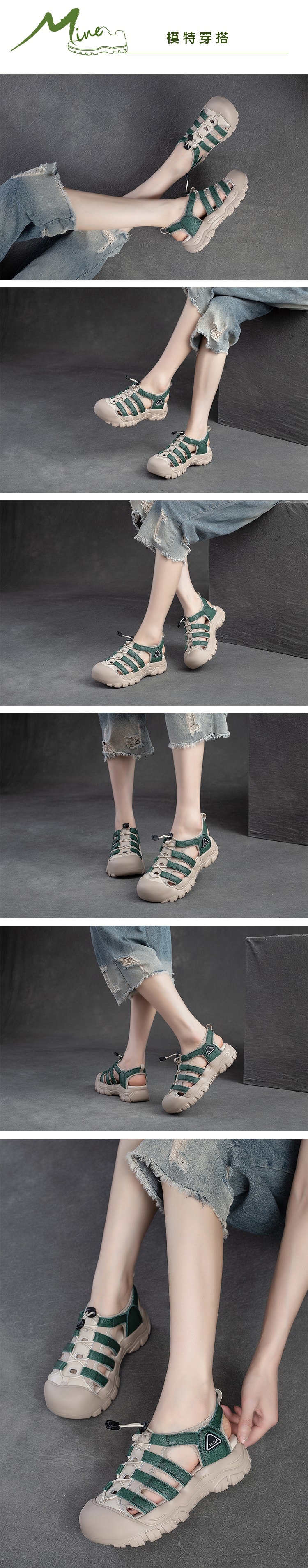 【MINE】真皮護趾機能厚底涼鞋/真皮頭層牛皮護趾機能舒適厚底休閒涼鞋 女鞋 綠